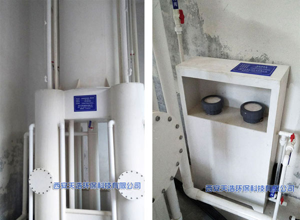 (2)大口井中的水與設(shè)備間有較高距離,利用高差,水自流入設(shè)備。當(dāng)水中濁度大于200NTU時,需將通過旋流混藥罐充分溶解的絮凝劑藥液注入進(jìn)水管道,時水中細(xì)小的懸浮顆粒物凝結(jié)、沉降。